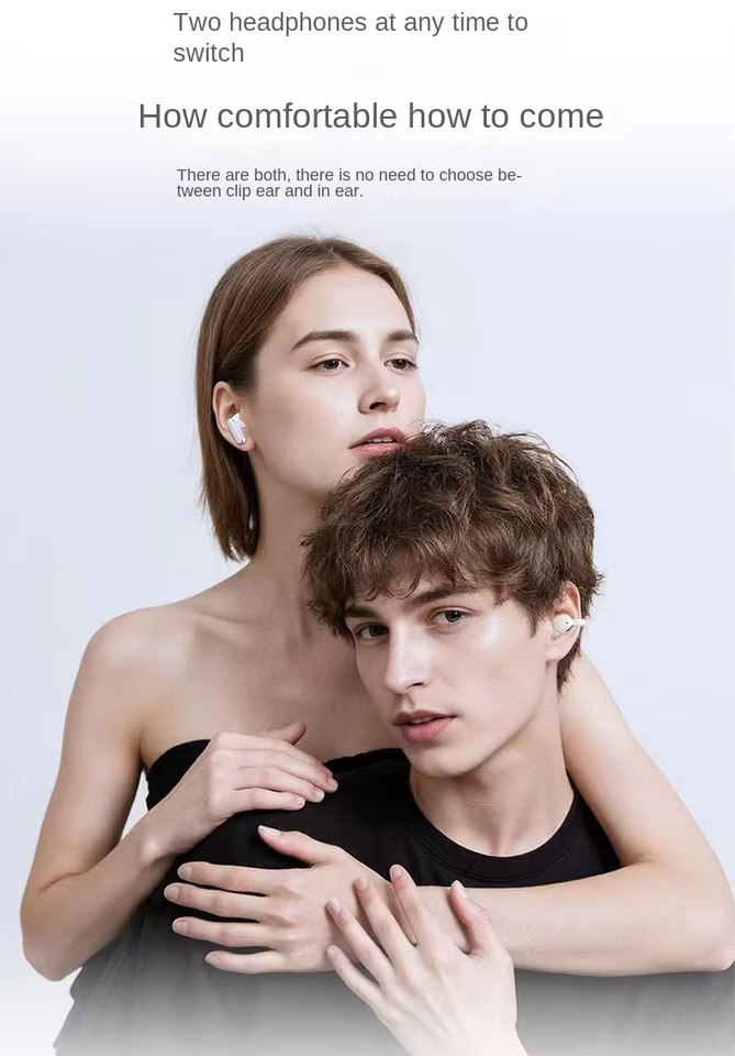 หูฟังบลูทูธ 5.49 แบบหนีบหู 2 in 1 เสียงสเตอริโอคุณภาพสูง ใช้งานได้ยาวนาน พร้อมไฟ LED แสดงสถานะ หูฟังไร้สายแบบใส่ในหู