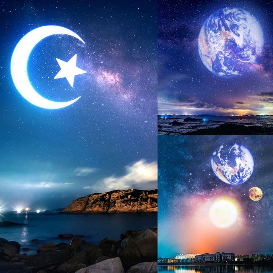 โคมไฟฉายภาพโลกและดวงจันทร์ 2 in 1 แบบ LED หมุนได้ 360 องศา พร้อมพอร์ต USB ฉายภาพท้องฟ้าเต็มดาว ใช้เป็นไฟกลางคืน