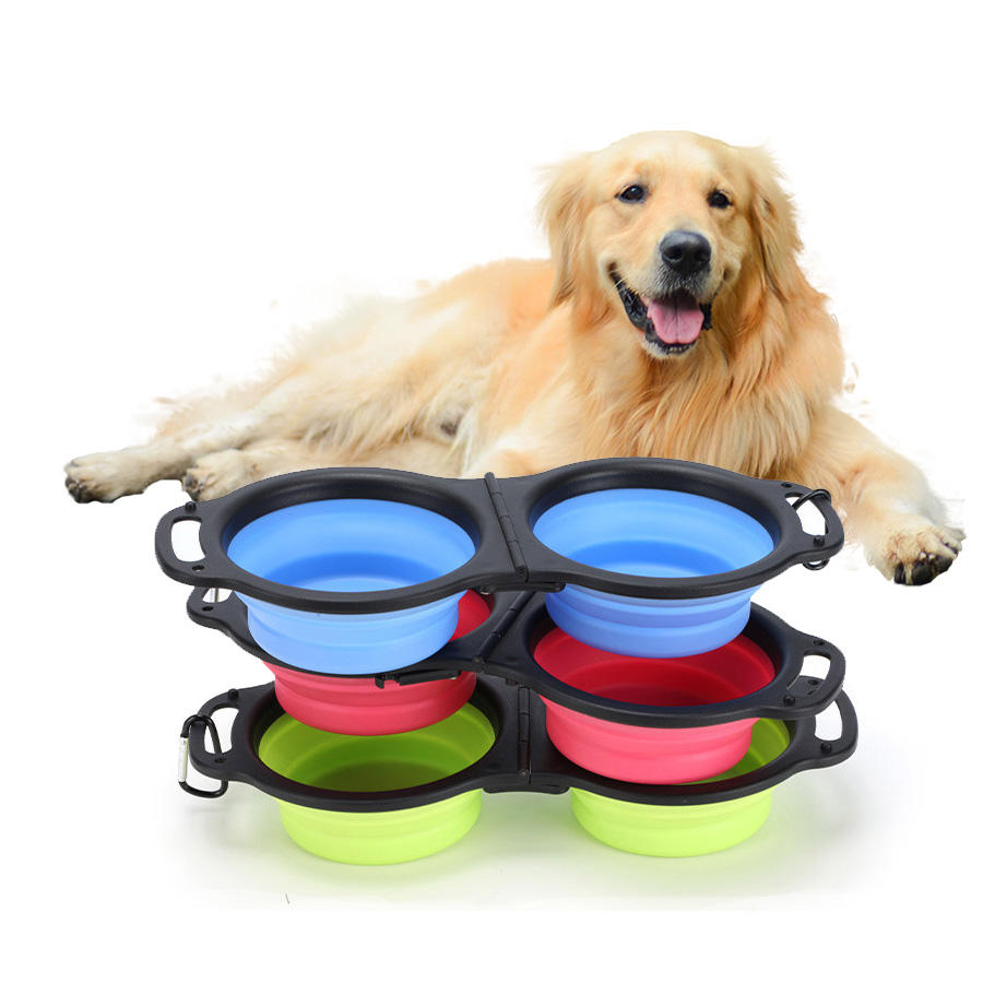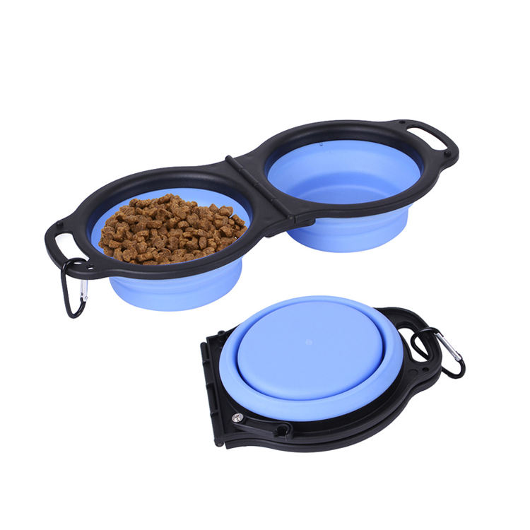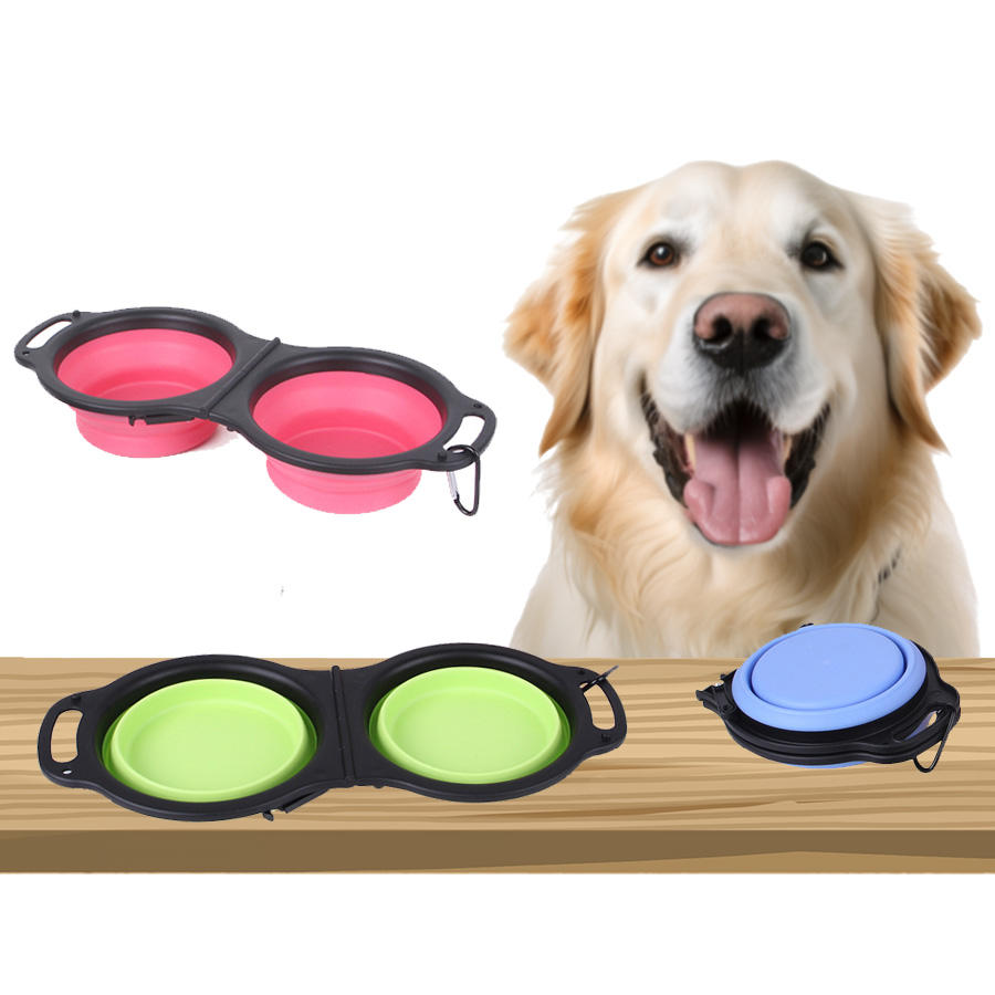 2 in 1 Eco-Friendly Solid Silicone Foldable Double Pet Bowl for Food & Water Portable Travel Dog & Cat Bowl
