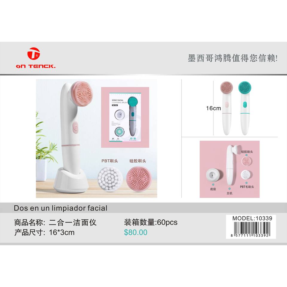เครื่องทำความสะอาดผิวหน้า 2-in-1 แบบพกพา ชาร์จผ่าน USB เครื่องทำความสะอาดผิวหน้า 2-in-1 แบบพกพา น้ำหนักเบา ทนทาน สำหรับดูแลผิวหน้าที่บ้าน รุ่น 10339