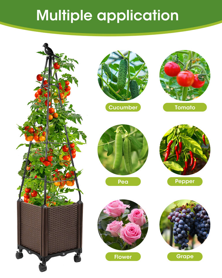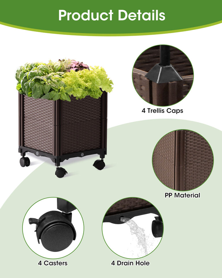 2-in-1 Square Design Flower Pot Set Mobile Water Storage System with Raised Planter & Climbing Frame for Garden & Home