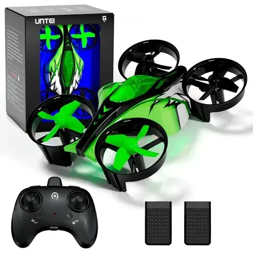 โดรนขนาดเล็กสีเขียวแบบ2-in-1สำหรับผู้เริ่มต้นควบคุมการบินและลงจอดมีแบตเตอรี่สำหรับใช้งานกลางแจ้ง