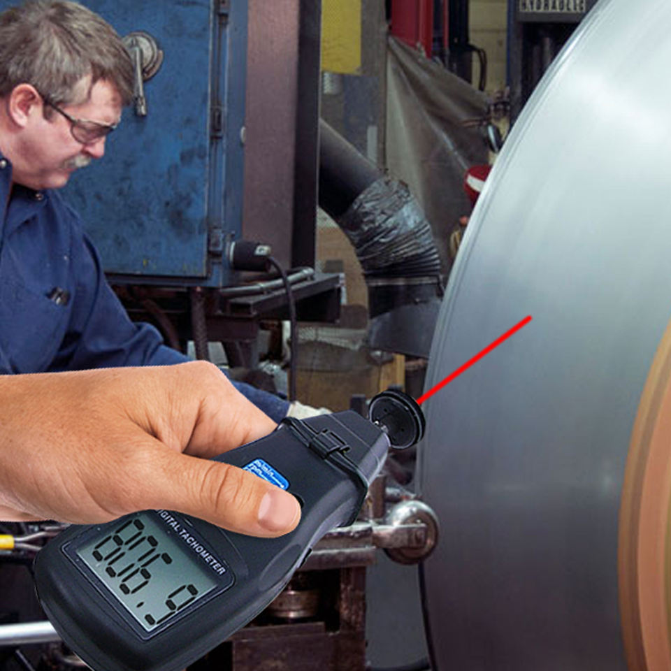 เครื่องวัดความเร็วแบบเลเซอร์และแบบสัมผัสแบบ2-in-1เครื่องทดสอบรอบต่อนาทีแบบมือถือสำหรับการวัดความเร็วรอบเครื่องยนต์99,999รอบต่อนาที (มี OEM)