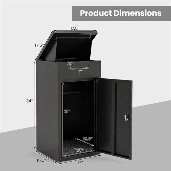 ตู้รับจดหมายและพัสดุกลางแจ้งแบบล็อคได้ 2-in-1 ทำจากเหล็กชุบสังกะสีสีดำ