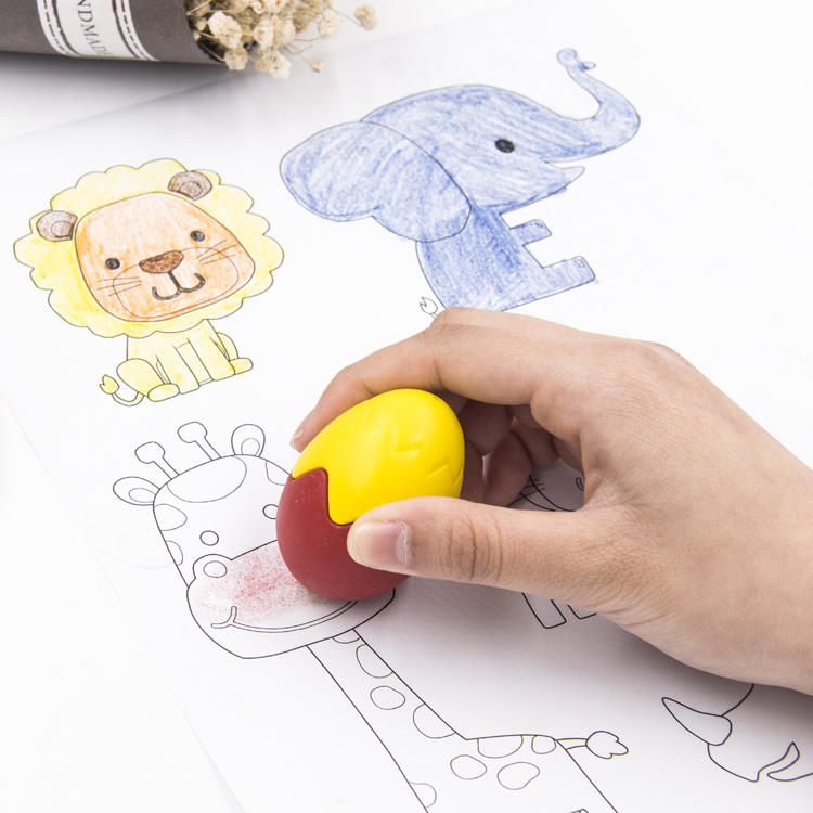 2ใน1ปลอดสารพิษสีสดใสครั้งแรกดินสอสีรูปไข่ง่ายปาล์มจับสำหรับเด็กวัยหัดเดิน