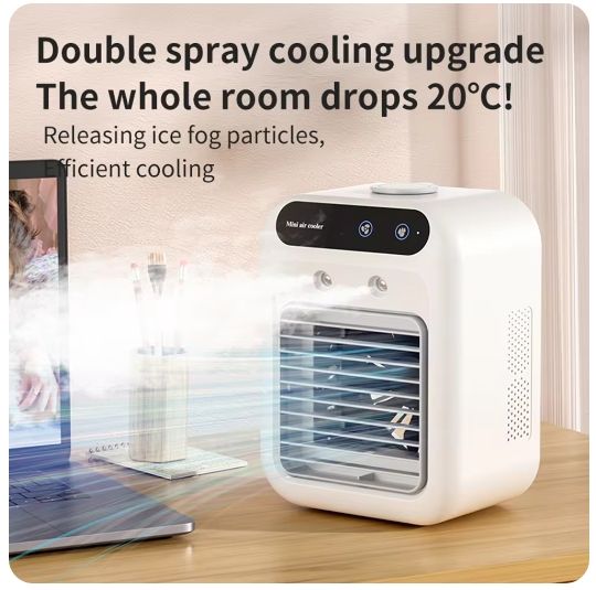 พัดลมทำความชื้นแบบพกพา2อิน1, เครื่องปรับอากาศแบบชาร์จไฟได้พัดลมมินิพัดลมไอน้ำเย็นพัดลมไอน้ำสำหรับบ้าน
