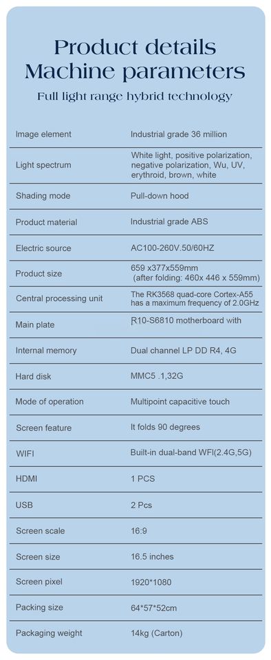 เครื่องวิเคราะห์ผิวหนังและเส้นผม 2 in 1 ระดับมืออาชีพ รองรับ 19 ภาษา พร้อมระบบ AI อัจฉริยะ สำหรับการวิเคราะห์เส้นผมและความงาม