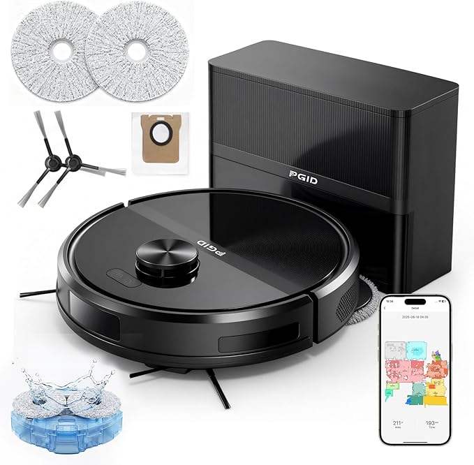 หุ่นยนต์ดูดฝุ่นถูพื้น 2-in-1 แรงดูด 5000Pa ระบบถูขอบ PGID ระบบป้องกันผมพันกันแบบคู่ ระบบหลบหลีกสิ่งกีดขวางอัจฉริยะ HEPA แบตเตอรี่ในตัวสำหรับใช้ในบ้าน