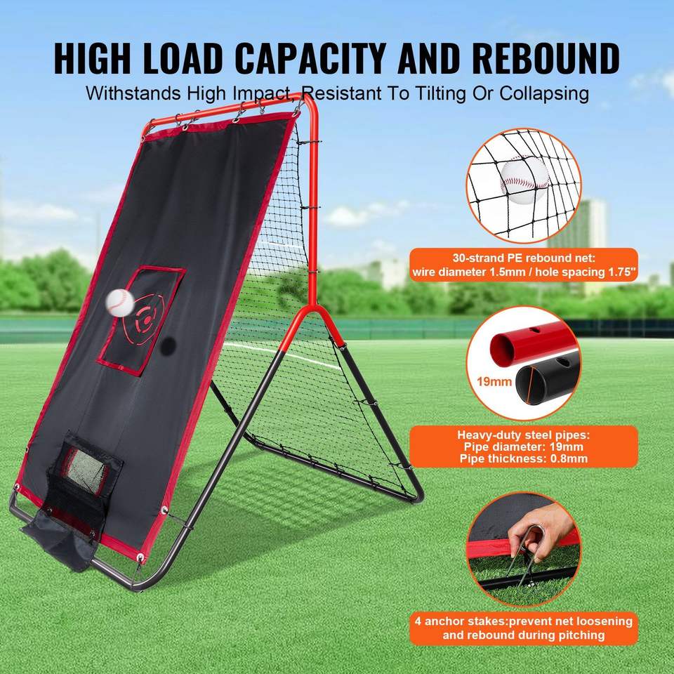 อุปกรณ์ฝึกซ้อมเบสบอลและซอฟต์บอลแบบ 2-in-1 ขนาด 3.5 x 4.5 ฟุต พร้อมตาข่ายรับลูกและระบบส่งกลับ