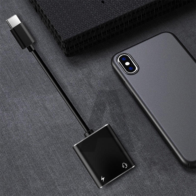 2 in 1 Type C เป็น Audio แจ็คหูฟัง3.5มม. & USB C อะแดปเตอร์ไมโครโฟนตัวเมียสายชาร์จฟังการโทรแยกเสียง