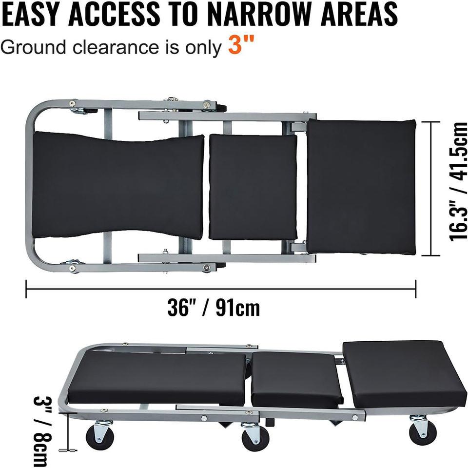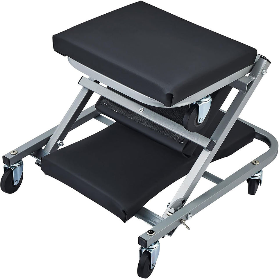 เบาะซ่อมรถยนต์แบบพับได้ 2 in 1 Z Creeper Seat รับน้ำหนักได้ 300 ปอนด์ เบาะบุนวม โครงเหล็ก พกพาสะดวก หมุนได้ สีดำ GAPGAR044
