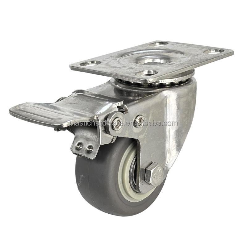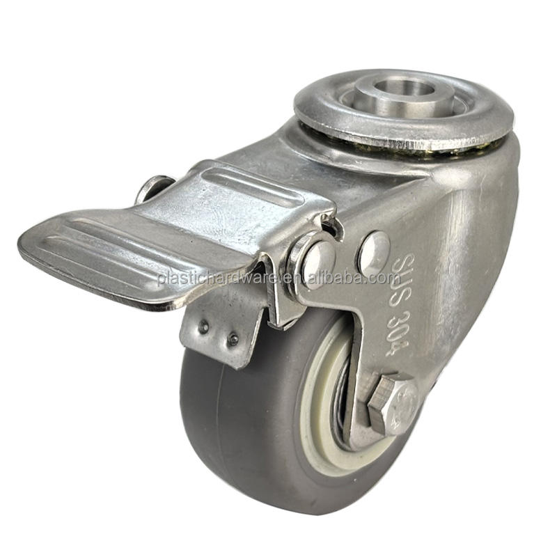 ล้อเลื่อนสแตนเลส 304 ขนาด 2 นิ้ว พร้อมเบรก ล้อยางเงียบ ราคาโรงงาน ลูกปืน