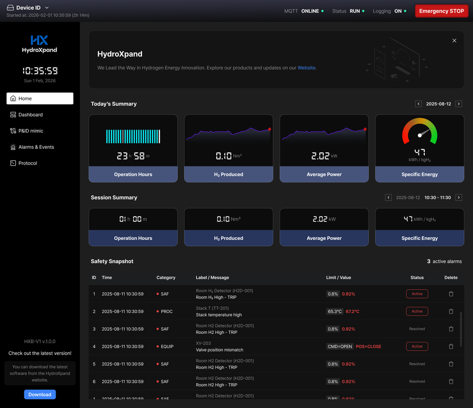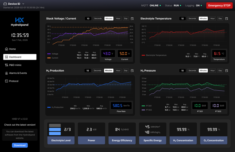 ระบบ HydroXpand HXB-V1 สำหรับการอิเล็กโทรไลซิสน้ำด้วยเมมเบรนแลกเปลี่ยนประจุลบ พร้อมกำลังไฟสูงสุด 0 วัตต์ และความบริสุทธิ์ 99.9%