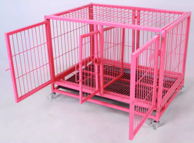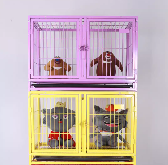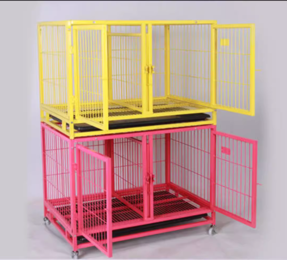 กรงสุนัขแบบหนา 2 ชั้น 3 ชั้น บ้านสัตว์เลี้ยงแบบซ้อนได้ กรงโลหะมีล้อ หลายสี