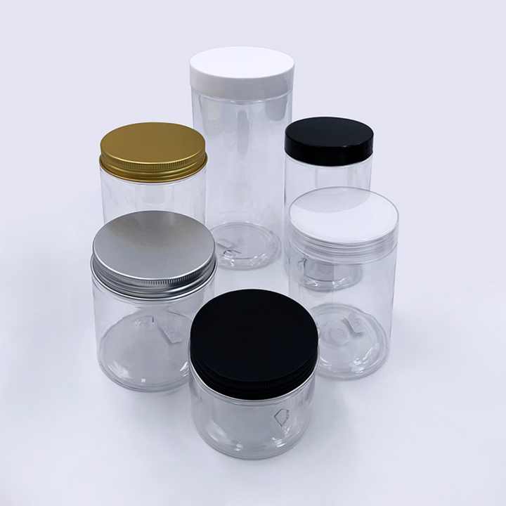 ขวดพลาสติกใส PET สำหรับอาหาร ขนาด 2 ออนซ์ 4 ออนซ์ 8 ออนซ์ 16 ออนซ์ 32 ออนซ์ พร้อมฝาเกลียวสีดำ พิมพ์โลโก้ได้