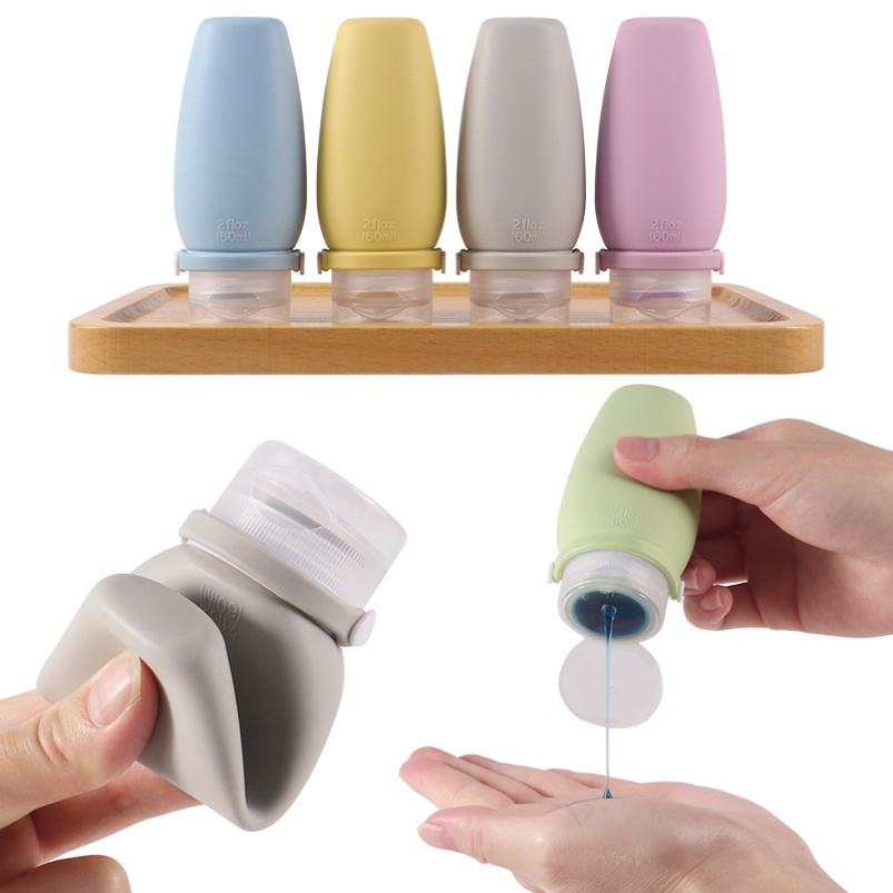 ขวดแบ่งแชมพูซิลิโคนเติมได้สำหรับเดินทาง2ออนซ์กันการรั่วขวดขนาดพกพาที่ได้รับการรับรองจาก TSA