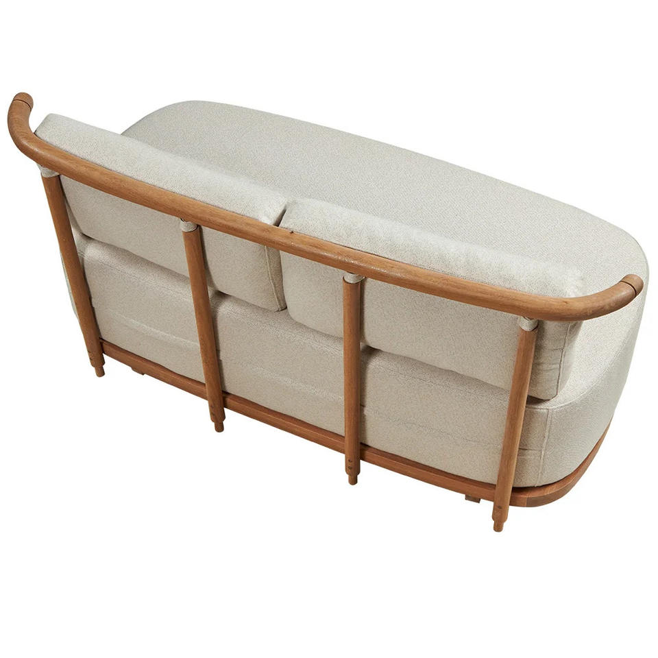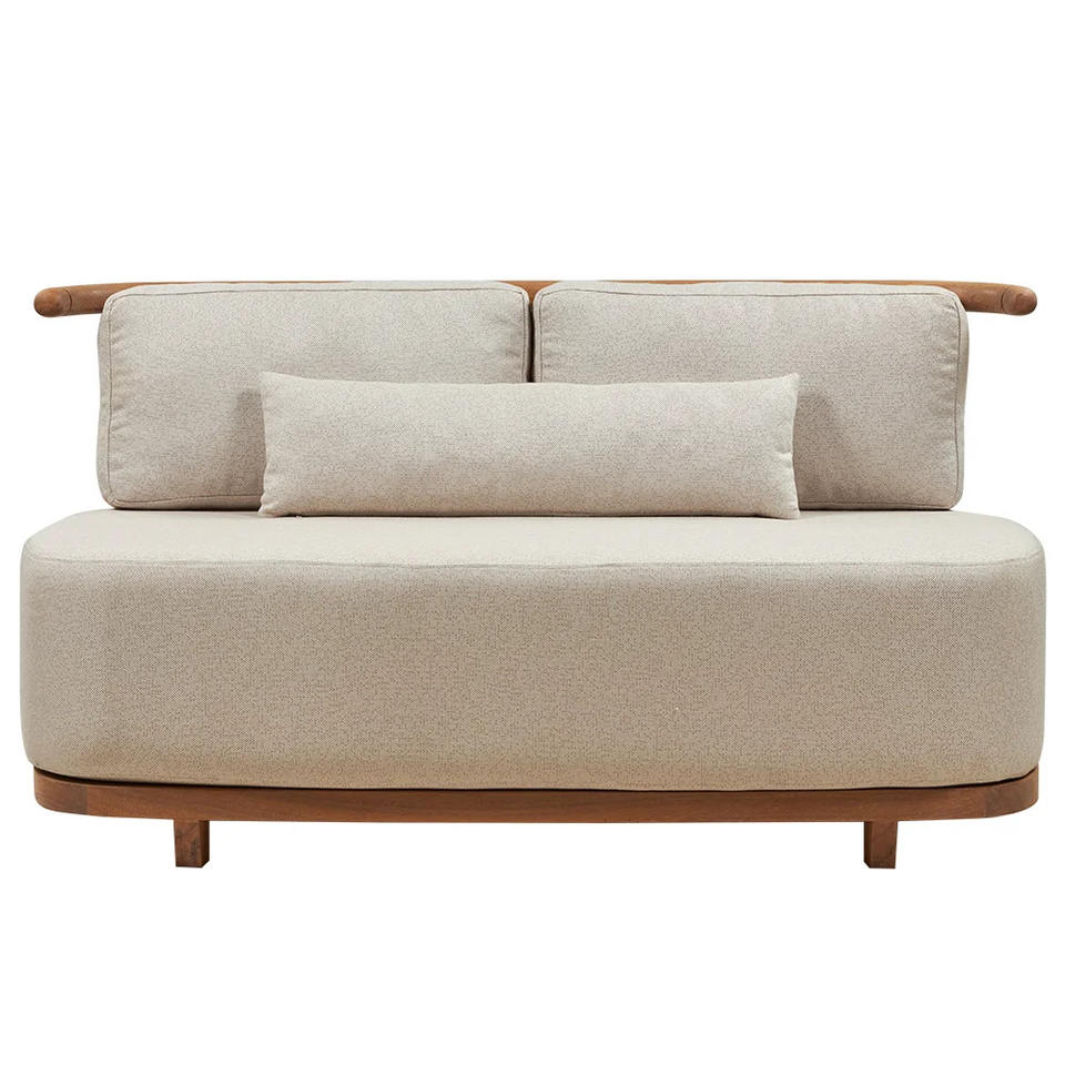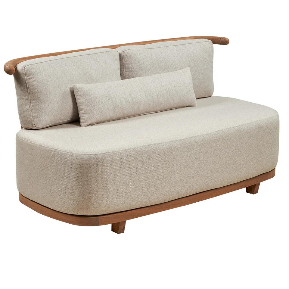 ม้านั่งไม้สัก 2 ที่นั่ง พร้อมเบาะนุ่มและพนักพิง ตกแต่งด้วยไม้ธรรมชาติ สำหรับใช้ภายในอาคาร