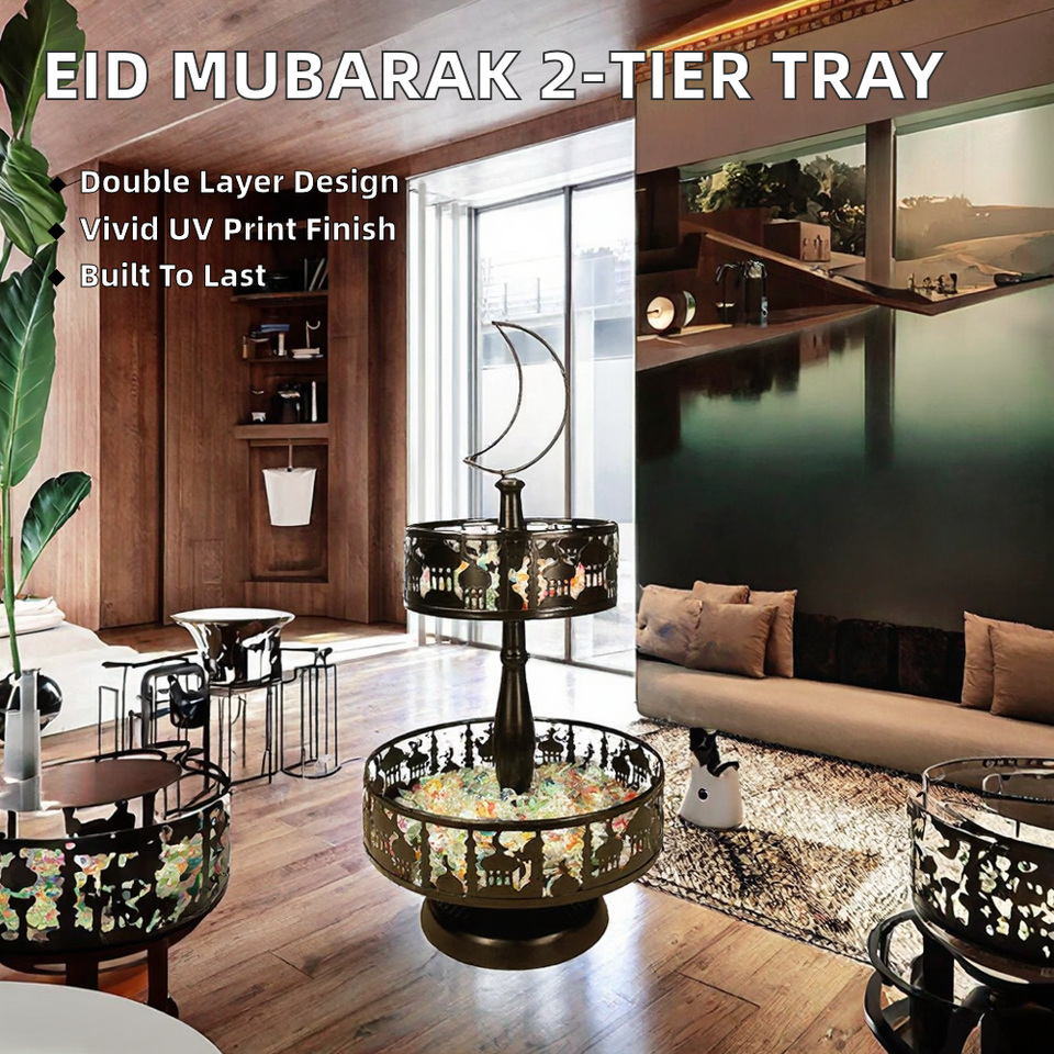 ถาดเสิร์ฟ 2 ชั้น ถาดเสิร์ฟสองชั้น ชั้นวางขนมคู่ 38.6x20 ซม. อุปกรณ์จัดงานเลี้ยง ของตกแต่งงานแต่งงาน