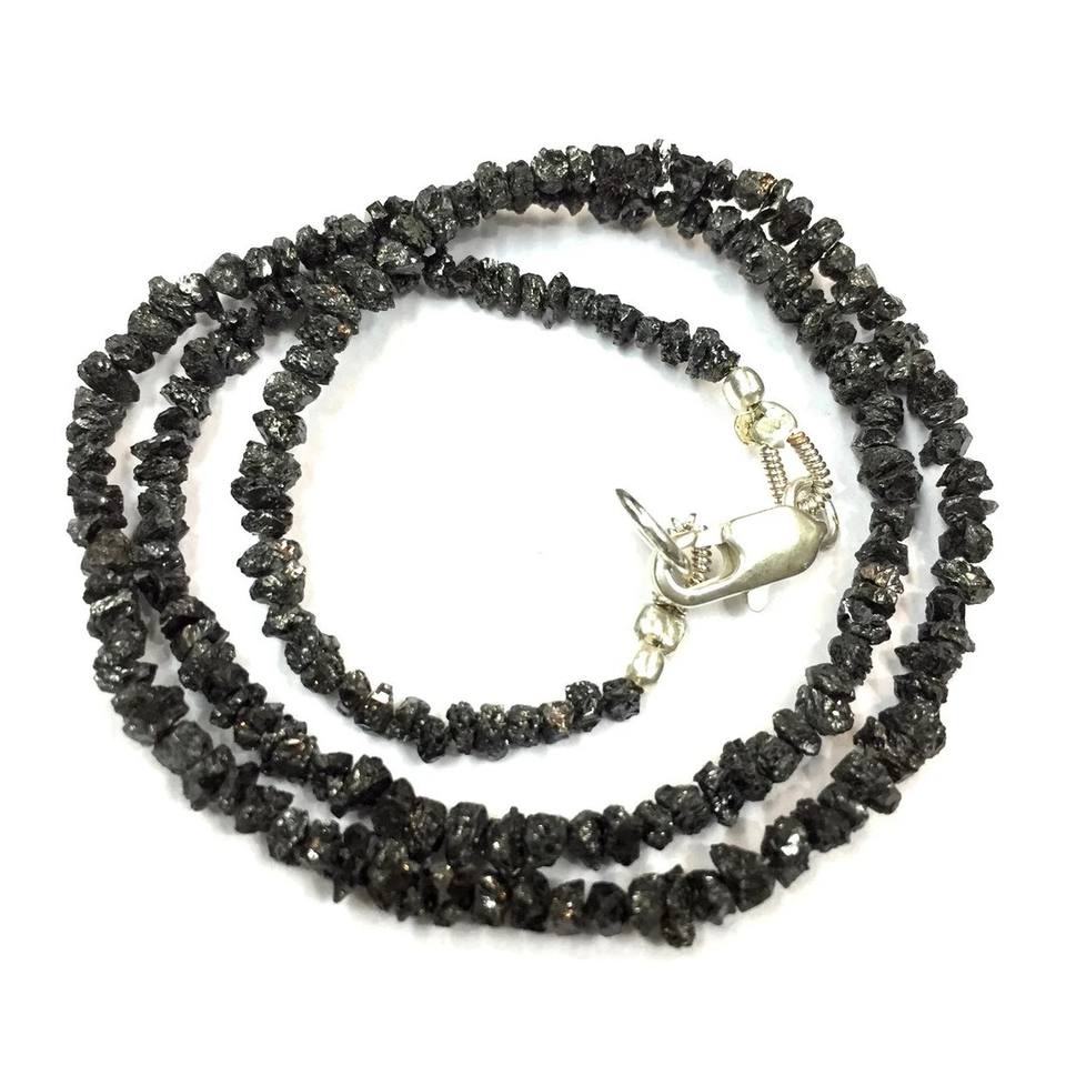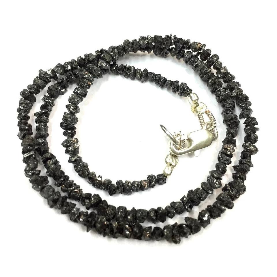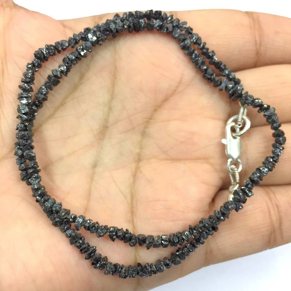 สร้อยคอเม็ดเพชรดิบสีดำธรรมชาติ 100% ขนาด 2 ถึง 3 มม. แบบเจาะรู ราคาถูกที่สุด เม็ดเพชรดิบ 20 นิ้ว