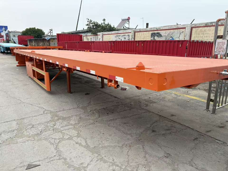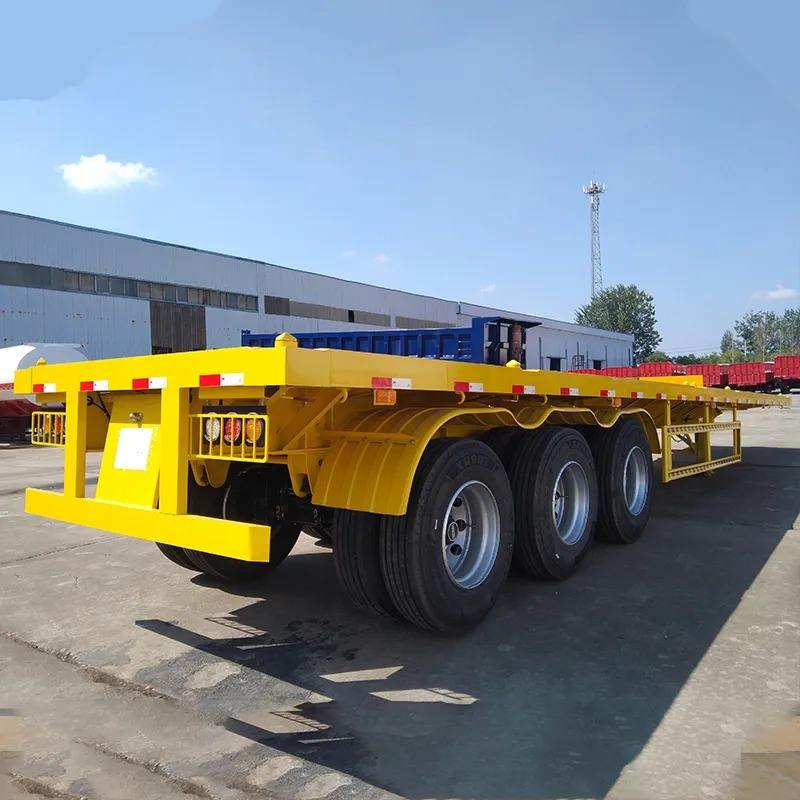 รถพ่วงพื้นเรียบขนาด 20/40 ฟุต สำหรับบรรทุกตู้คอนเทนเนอร์ เหมาะสำหรับตลาดเอเชียตะวันออกเฉียงใต้ ผลิตจากวัสดุเหล็กที่ทนทาน