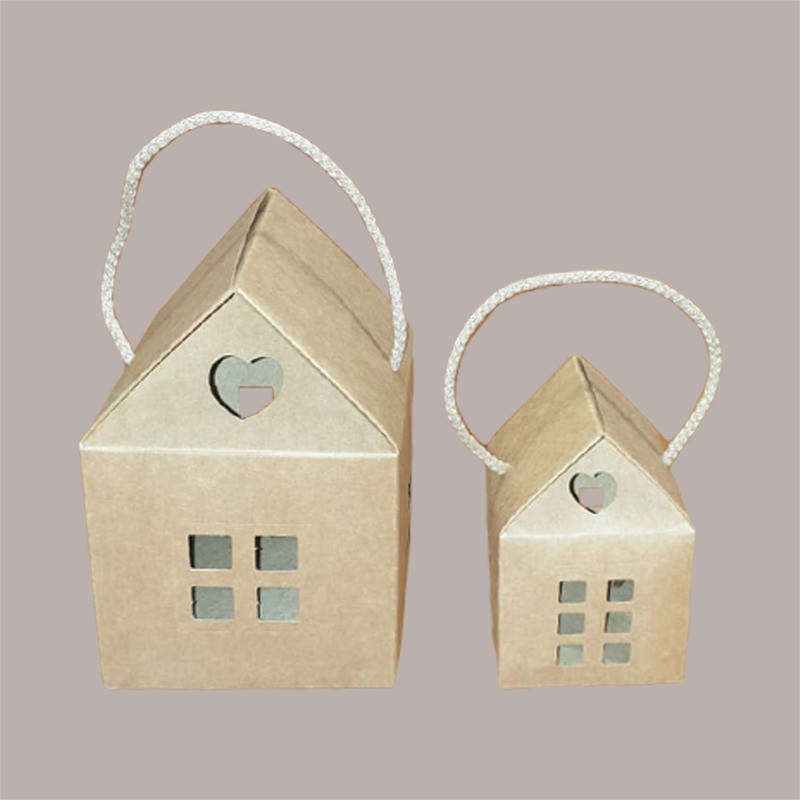 กล่องของขวัญบ้านกระดาษแข็งสีน้ำตาล20กล่อง80x80H75mm สำหรับวันหยุดคริสต์มาส