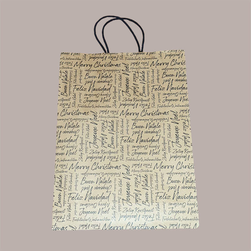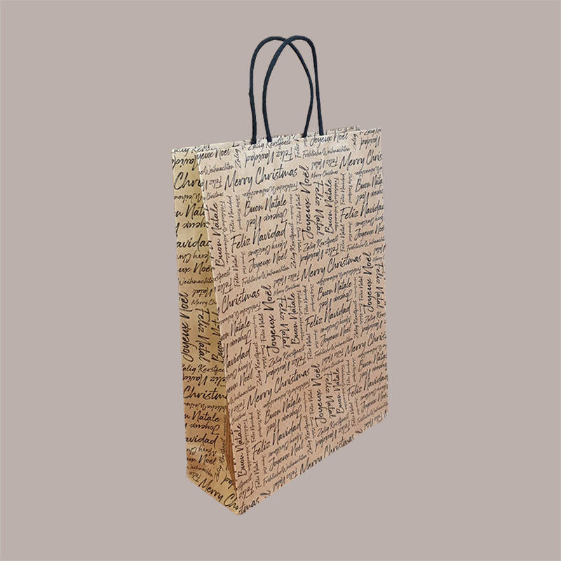 20 Brown Paper Shopping Bags with Word Handle Cord 190x90H250 for Christmas Holiday Supplies