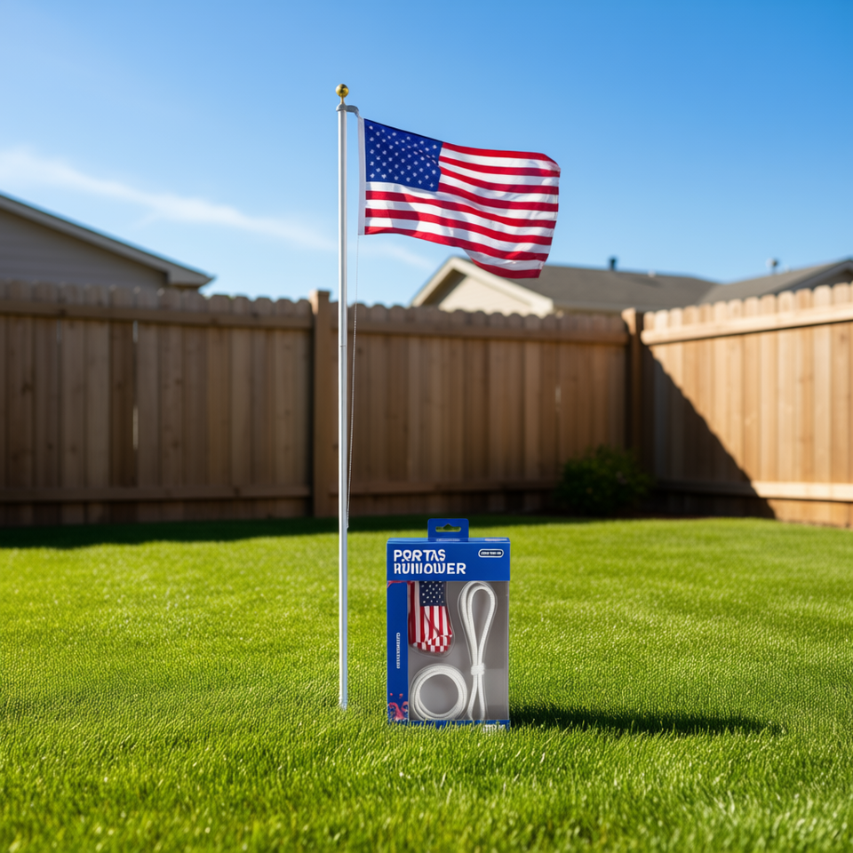 ชุดเสาธงอลูมิเนียม 20 ฟุต แบบหนาพิเศษ พร้อมธงและเชือกสำหรับตั้งโชว์กลางแจ้ง