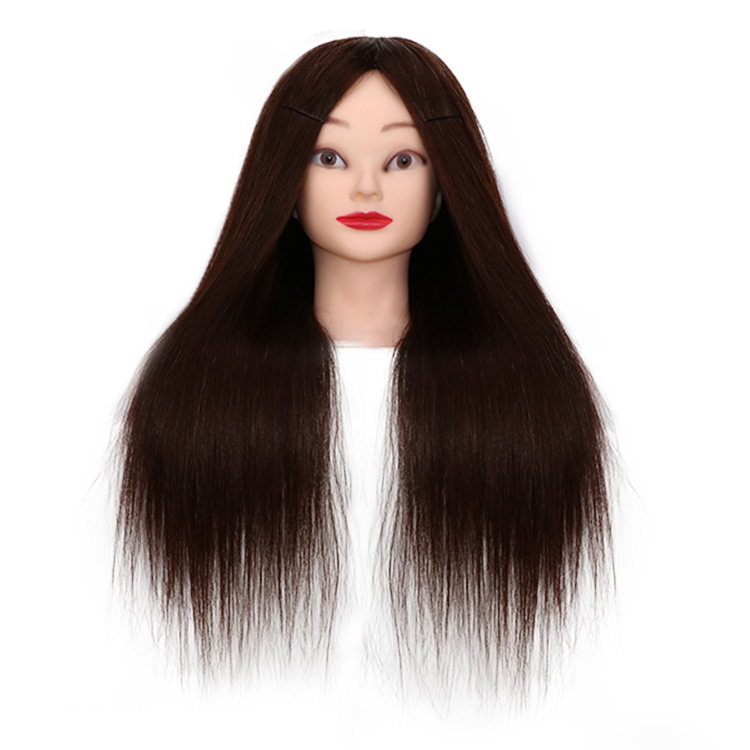 หัวหุ่นฝึกทำผม ขนาด 20 นิ้ว ผมแท้ 75% สำหรับฝึกตัดผม จัดแต่งทรงผม พร้อมผมสีน้ำตาล สำหรับฝึกแต่งหน้า