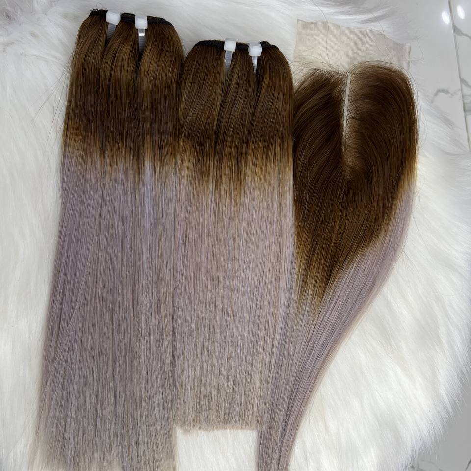20นิ้วตัวสั้นสองชั้นสำหรับต่อผมมนุษย์แท้เวียดนามเรียงตามแบบผมตรงถักทอ