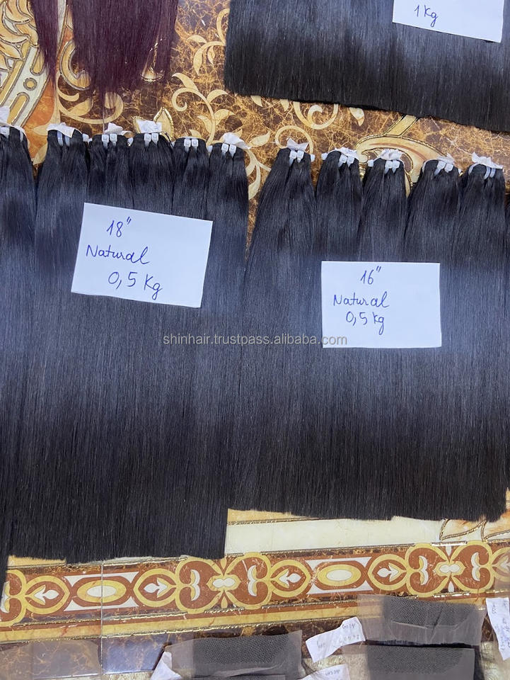 มัดผมมนุษย์แท้20นิ้วจากเวียดนามผมตรงแบบโครงยาวสองชั้นพร้อมที่ปิดด้วยลูกไม้ขนาด4x4 5X6X6 HD