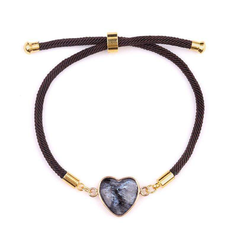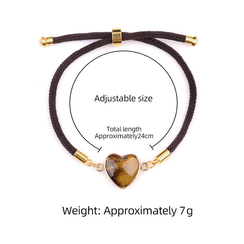 สร้อยข้อมือเชือกทองถักรูปหัวใจประดับด้วยหินธรรมชาติ 20 ชนิด ปรับขนาดได้ เหมาะสำหรับคู่รัก