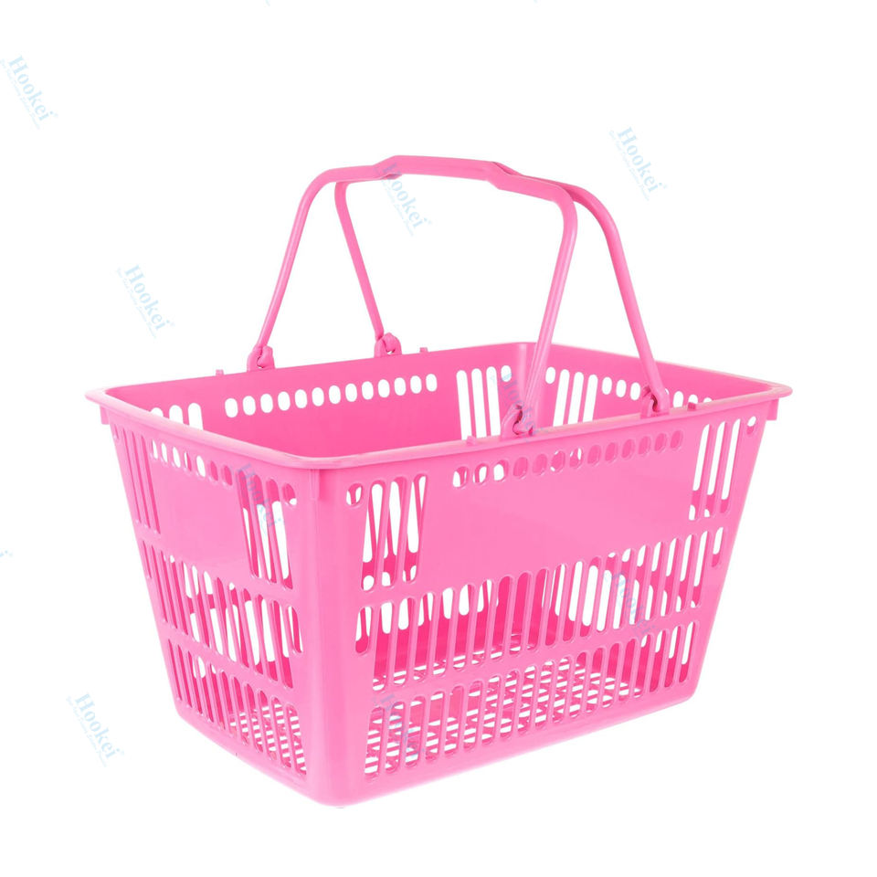 ตะกร้าของชำขนาดใหญ่20ลิตรพร้อมที่จับตะกร้าพลาสติกแบบพกพาขนาดใหญ่สำหรับร้านค้าปลีกที่มีล้อ