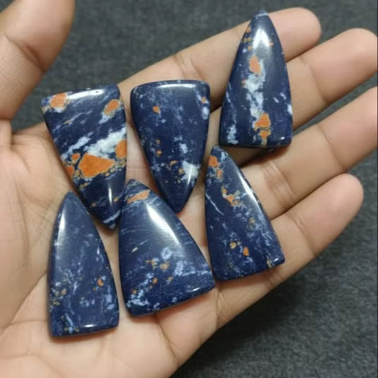 ลด 20% และของแถม คุณภาพเยี่ยม 100% โซดาไลต์ธรรมชาติ รูปทรงลูกแพร์ แบบคาโบชอง พลอยหลวมคู่ สำหรับทำเครื่องประดับ ลด 20% พร้อมของแถม