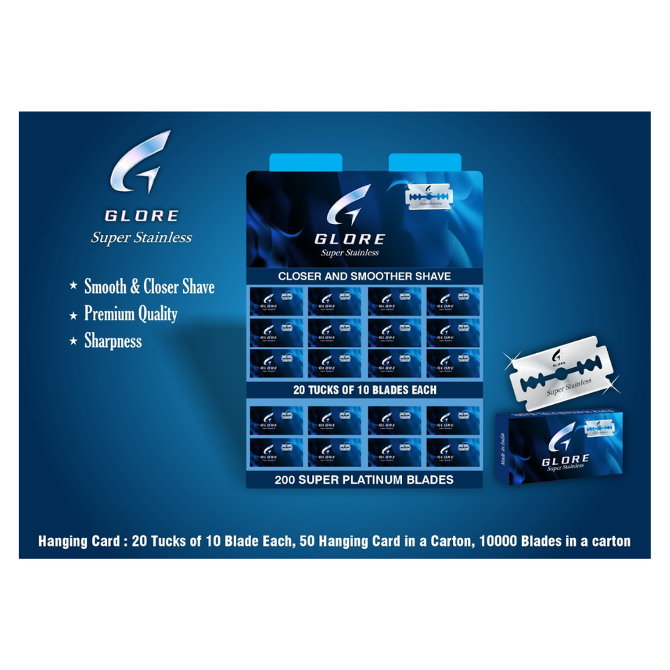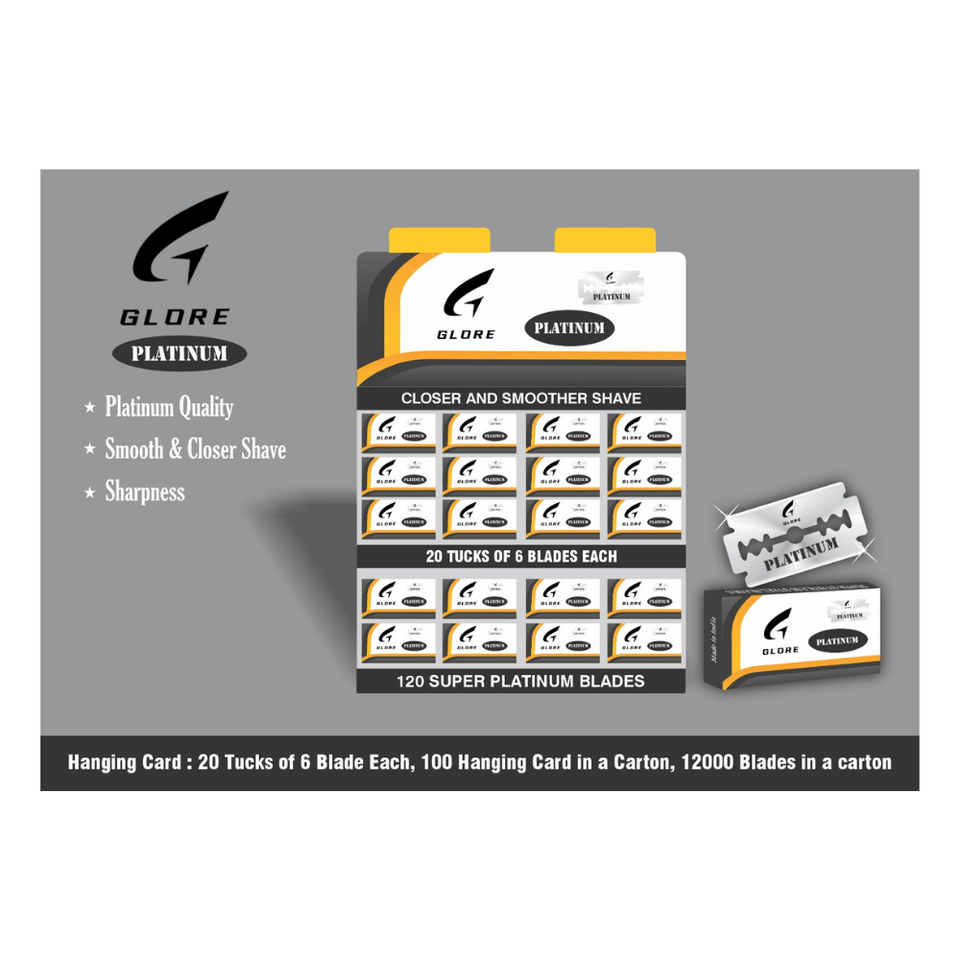 20 Packs Platinum-Coated Double-Edge Stainless Steel Razor Blades 5 Blades Per Pack 100 Hanging Card Carton Total 10000 Blades