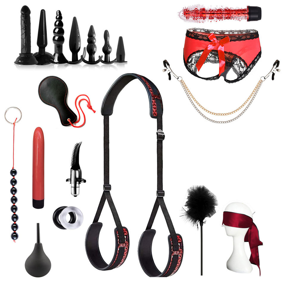 ชุดทาสเซ็กซ์ BDSM 20ชิ้นชุดสำหรับเกย์ BDSM สายรัดลูกปัดเสียบก้นเตียงแบบแกว่งผลิตภัณฑ์ทาสจีน