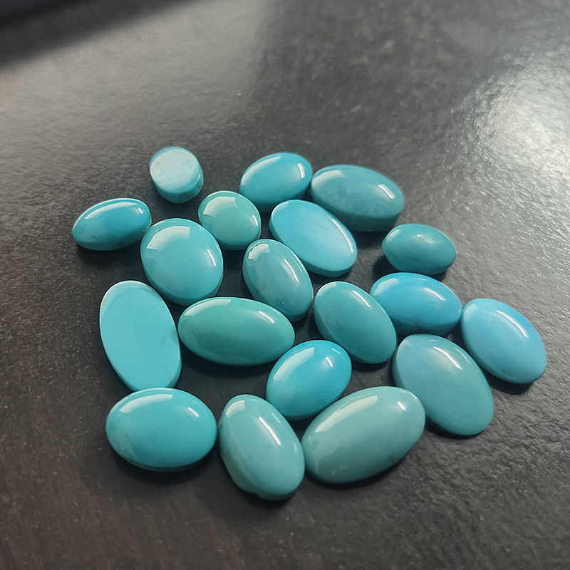 เทอร์ควอยซ์ธรรมชาติ ขนาด 14x10 มม. ถึง 20x12 มม. ทรงรีแบบคาโบชอง (ล็อต)