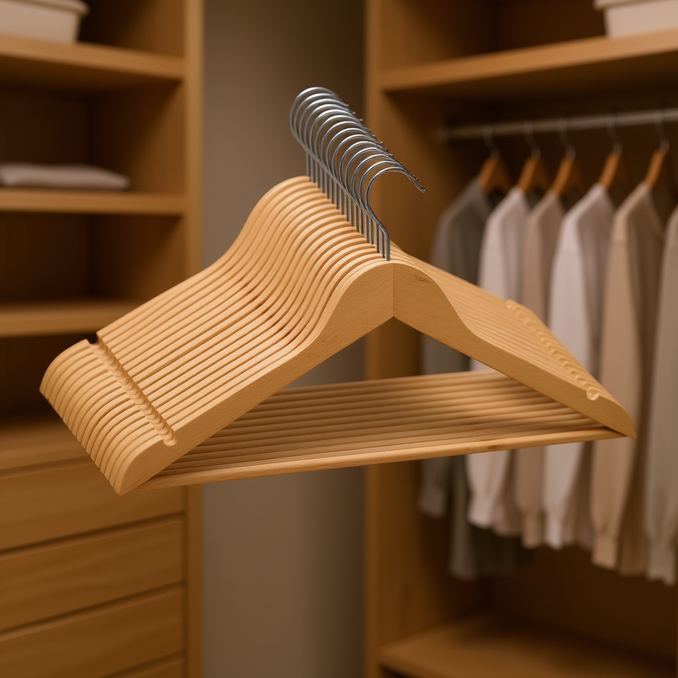 ไม้แขวนเสื้อไม้พรีเมียม ชุด 20 ชิ้น ตะขอสแตนเลสกันลื่น สำหรับจัดระเบียบตู้เสื้อผ้า สีน้ำตาล รูปทรงสี่เหลี่ยมผืนผ้า