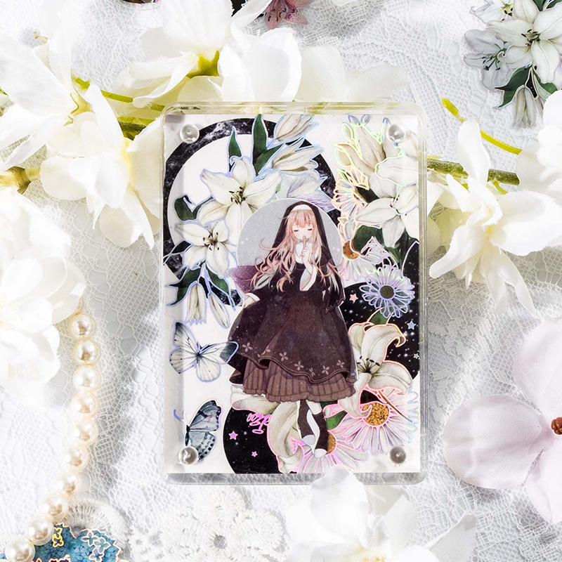 20 Pieces/Pack Stickers Lilium Casa Blanca Series Artistic Flower Laser Silver Journal Material Flower Diary Sticker 6 Models