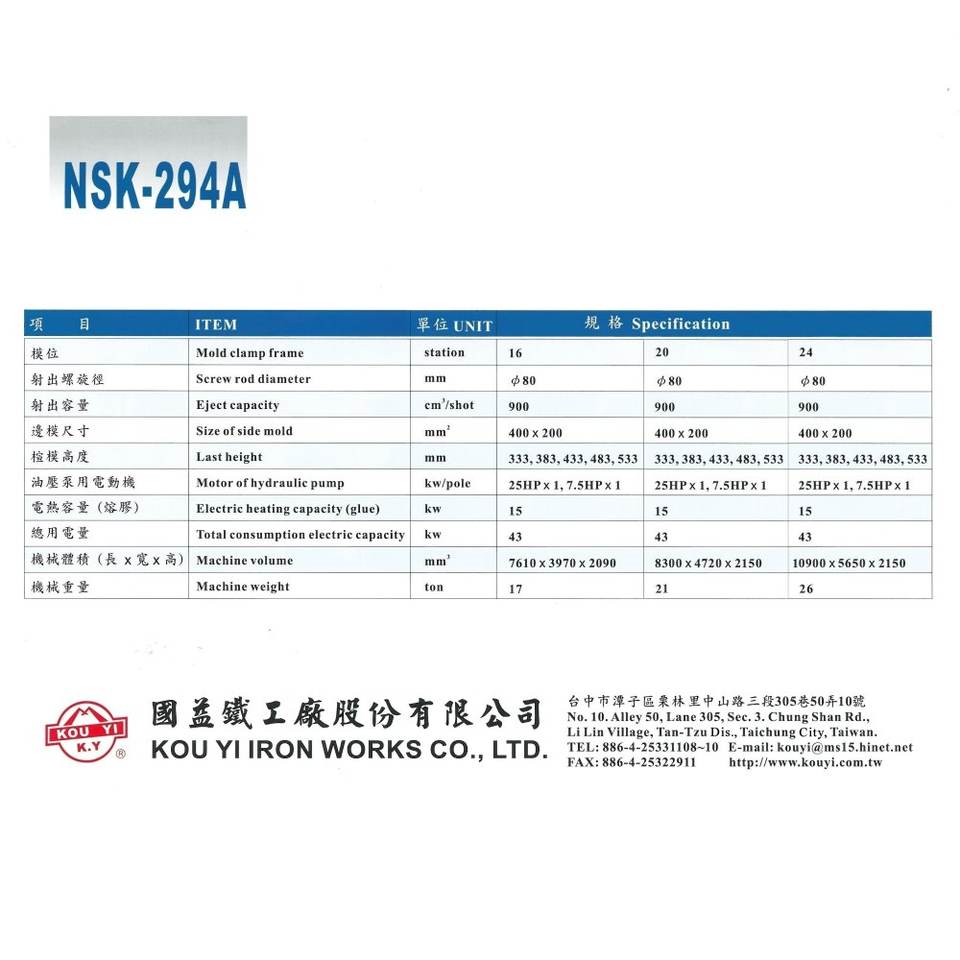 ขนาดของแม่พิมพ์ที่มี:L700xW600xH333,383,433,483,533(มม.)