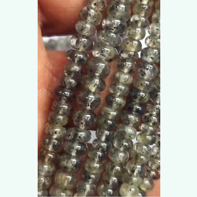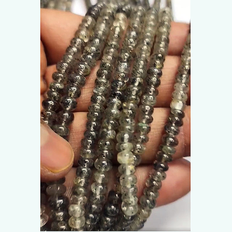 ลูกปัดควอตซ์รูไทล์สีดำธรรมชาติ 20 เส้น ขนาด 8x5 มม. รูปทรงรอนเดลล์ เรียบเนียน น้ำหนัก 1828 กะรัต ขายเป็นล็อตโดย Iroc Sales ความยาว 16 นิ้ว สร้อยคอจากลูกปัดพลอย