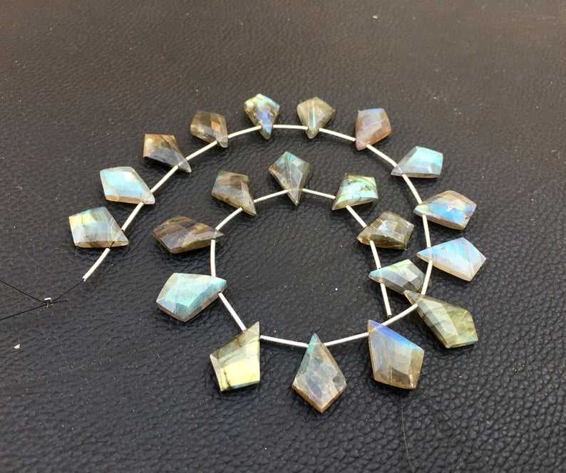 20ชิ้นที่ไม่ซ้ำกันแฟนซีรูปร่างออกแบบลูกปัดลาบราดอไรต์ธรรมชาติสีฟ้าไฟพลอยสำหรับเครื่องประดับทำขายส่ง