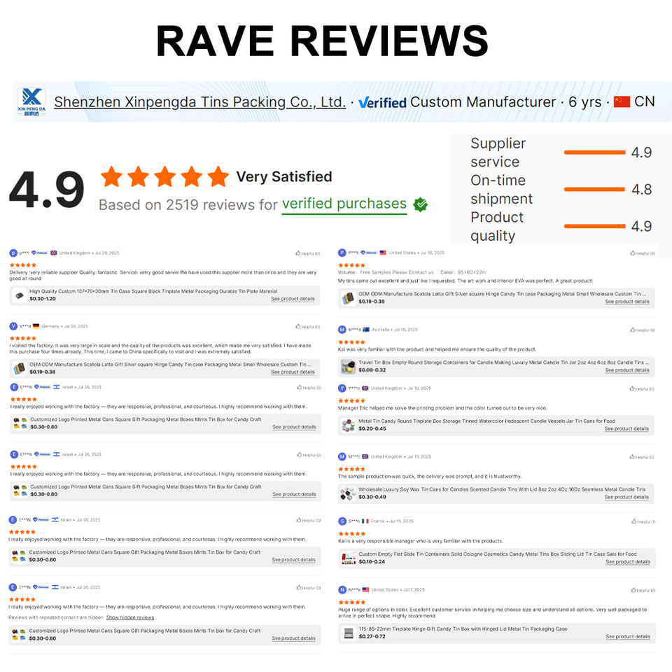 ตัวเลือกขนาดแบบกำหนดเอง: ให้ผู้ซื้อกำหนดขนาดที่ต้องการได้อย่างแม่นยำ ทำให้กล่องดีบุกเข้ากับความต้องการเฉพาะของสินค้าอย่างสมบูรณ์
