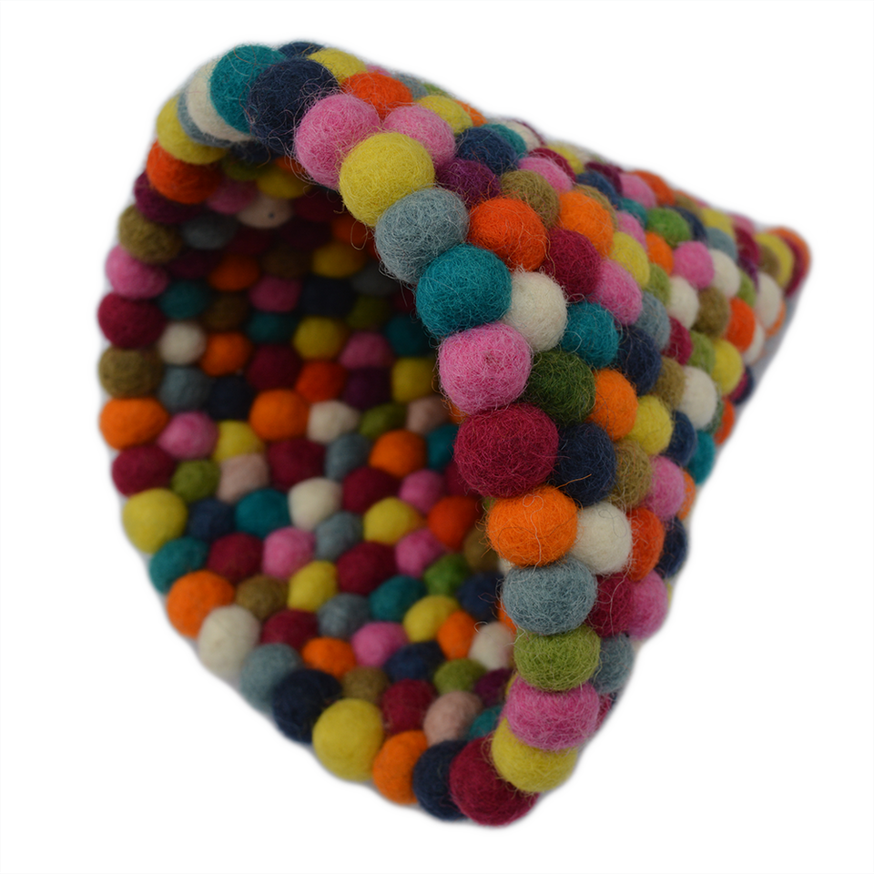 กรวยลูกบอลหลากสี20ซม. ผ้าขนสัตว์ธรรมชาติสำหรับตกแต่งบ้านในร่มทำด้วยมือในประเทศเนปาล