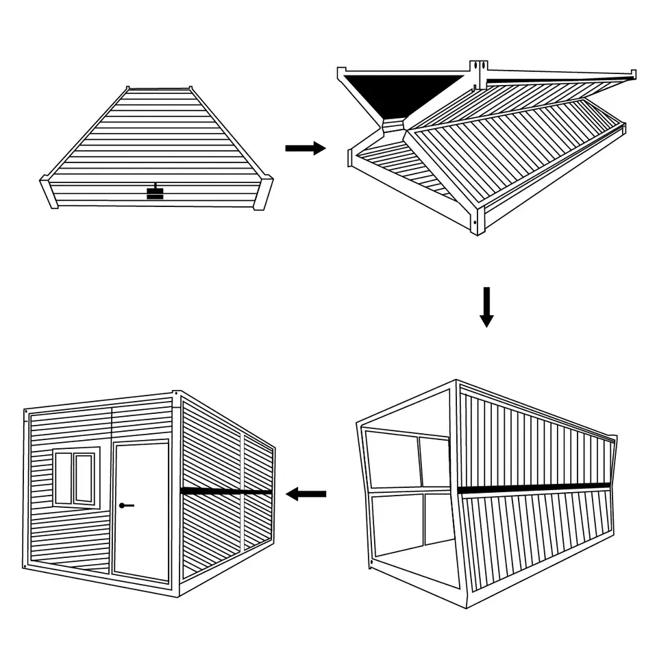 บ้านคอนเทนเนอร์พับได้20ฟุตมีห้องสุขาและห้องนอนซึ่งติดตั้งง่ายและสะดวกในการขนส่ง