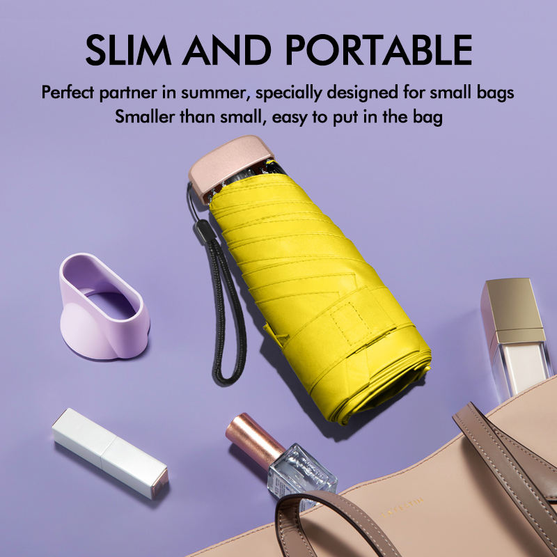 ร่มพับห้าตอนขนาดเล็กพิเศษ 20 นิ้ว สีดำเคลือบผิว ป้องกันรังสียูวี ดีไซน์คลาสสิกหรูหรา ใช้ระบบเปิด-ปิดแบบธรรมดา ทำจากไนลอน เหมาะสำหรับเป็นของขวัญทางธุรกิจ