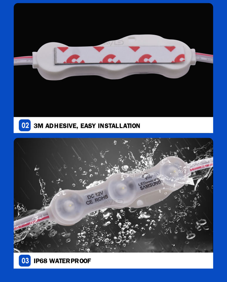 20ชิ้นต่อสตริง3-LED 6815สีขาว2835 SMD LED โมดูลไฟ DC 12V 1.2W IP68กันน้ำกล่องไฟตัวอักษร