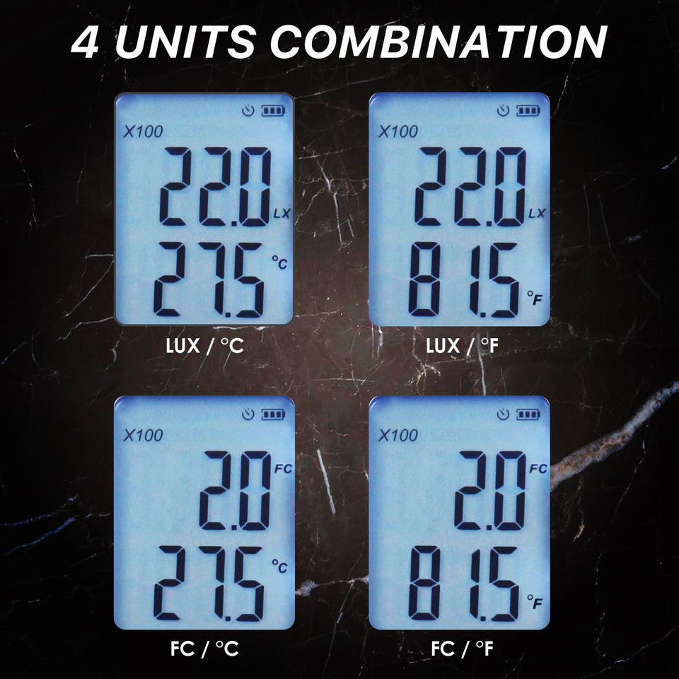 หน่วยของความสว่างและอุณหภูมิ:ลักซ์°ซี, ลักซ์/°เอฟ, เอฟซี/°ซี, เอฟซี/°เอฟ