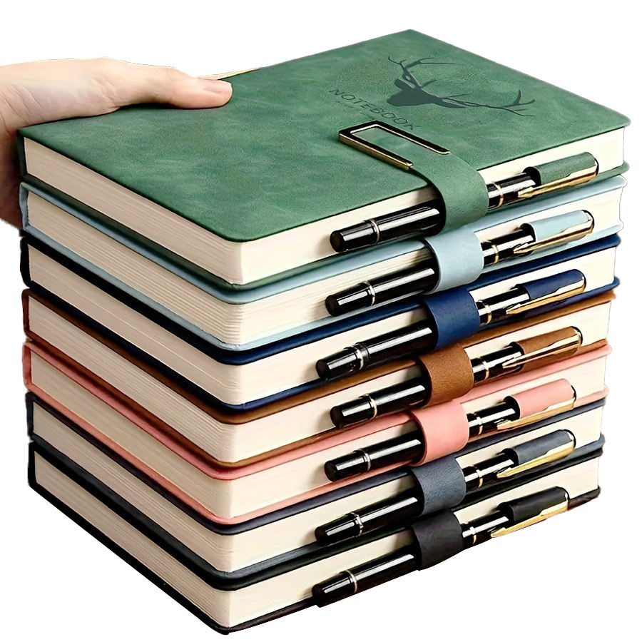 สมุดบันทึกปกหนังคุณภาพพรีเมียมขนาด A5 จำนวน 100 แผ่น พร้อมที่ใส่ปากกา