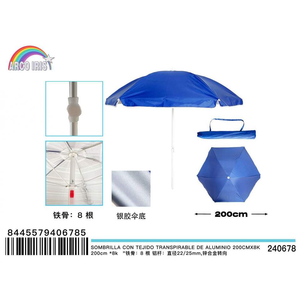 ร่มชายหาดขนาด200ซม. ทำจากผ้าอะลูมิเนียมระบายอากาศได้ดีใช้ในสวนและร่มกันแดดสำหรับใช้ในโรงยิมพร้อมฐาน