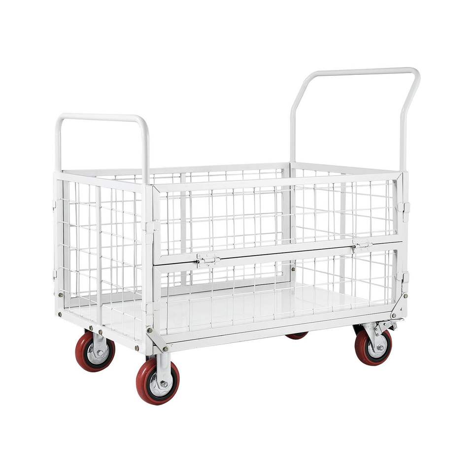 รถเข็นมือแบบพับได้ 6-in-1 รับน้ำหนักได้ 2000 ปอนด์ พร้อมล้อหมุน แบบพื้นเรียบ พร้อมตะกร้าเก็บของ